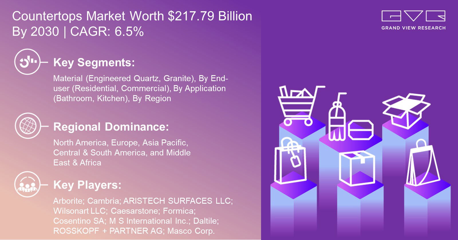 Grand View Research has segmented the global countertops market on the basis of material, application, end-user, and region: