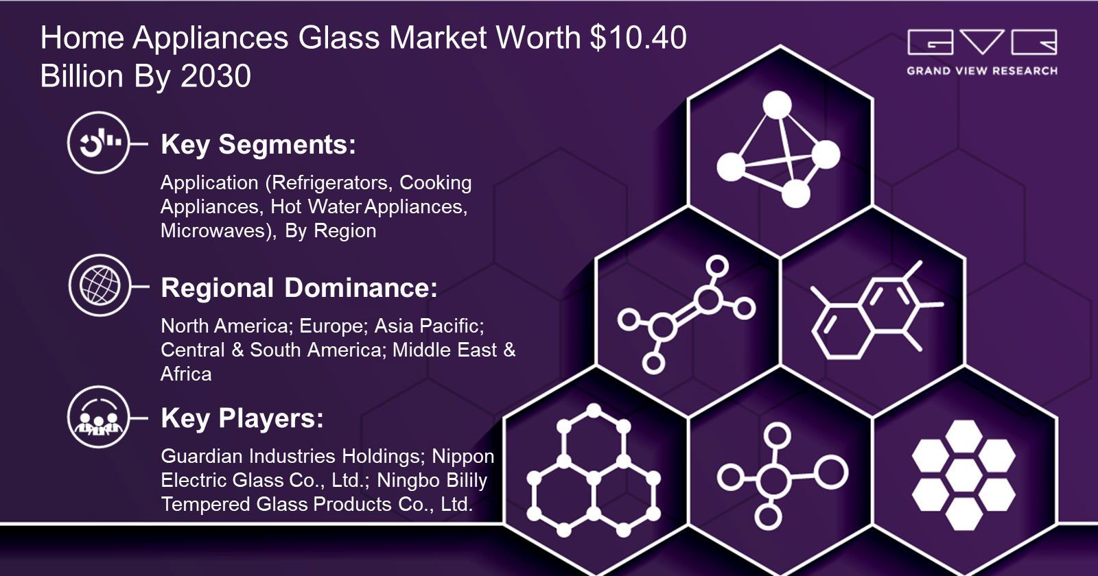 The global Home Appliances Glass Market size is expected to reach USD 10.40 billion by 2030, according to a new report by Grand View Research, Inc., expanding at a CAGR of 4.0% from 2022 to 2030. Growing demand for products such as microwaves, cooking appliances, and refrigerators owing to improvements in living standards, rising need for comfort, and inclination towards working remotely is likely to assist the market growth.