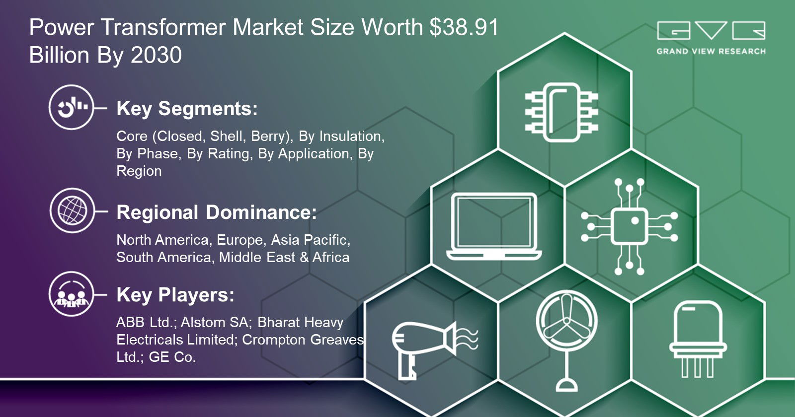 Grand View Research has segmented the global power transformer market based on core, insulation, phase, rating, application, and region: